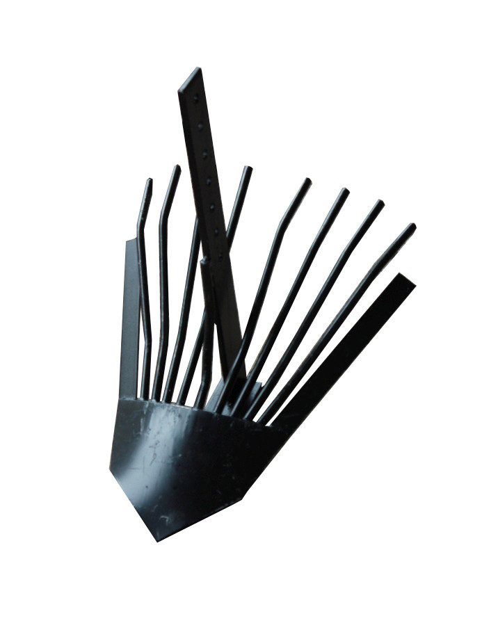 Стійка картоплекопалки виготовлена зі сталевої смуги 10 × 50 × 500 мм. Має 7 отворів діаметром 12,5 мм, під болт М12. Лопата картоплекопалки також виготовлена із сталі і має товщину 3 мм., Довжина від носика лопати до стійки становить 300 мм. Є підсилювач з сталевого прута Діаметром 12 підошва товщиною 6 мм, а також дві сталеві смуги 4 × 30 × 300 мм (з обох сторін). У задній частині копалки встановлено вісім зубців. Вони виготовлені із сталевого прута 12 мм. Загальна довжина екскаватори (від носика лопати в землю зубців) складає 560 мм, її максимальна ширина по крайніх точках - 380 мм.